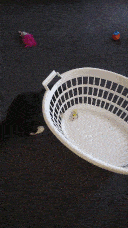 Pixie started playing with the basket!!! She somehow got one of her toys in it and then tried to get it through the gaps! Then she tipped it over and started playing underneath it. She got upset when I tried to take it off her, so I just let her have her fun! ( ̄∀ ̄)