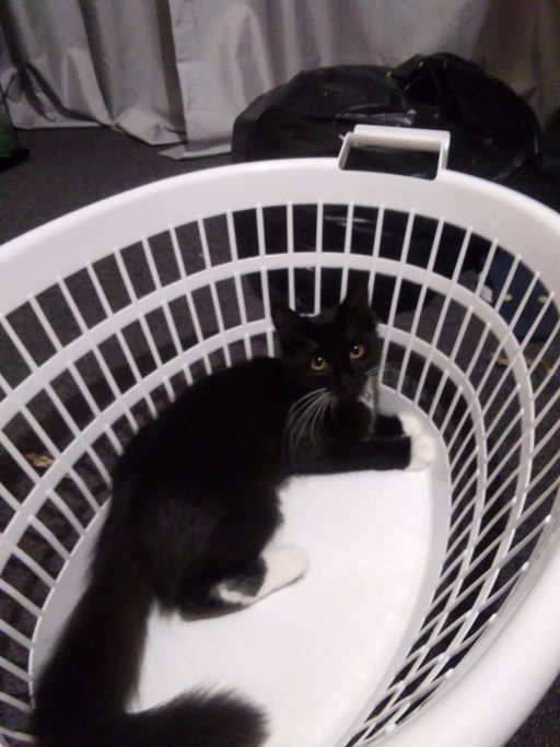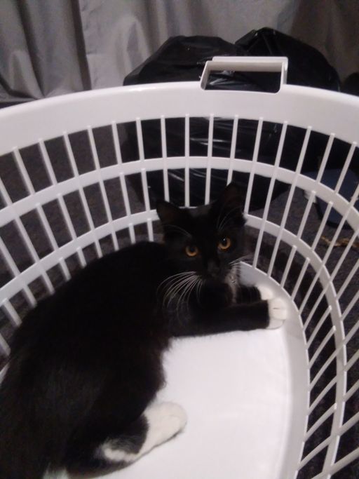 Pixie decided to sit in my clothes basket. She even let me pick it up and carry her around in it! (๑>ᴗ<)ﻭ