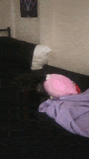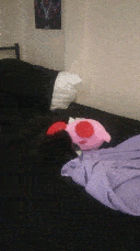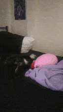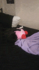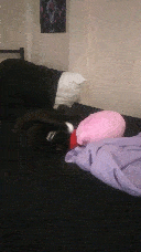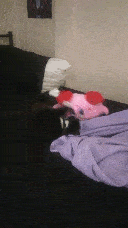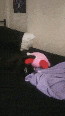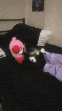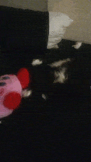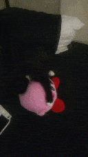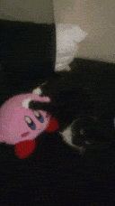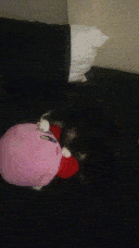 My mum brought home my old Kirby plush doll from when I was a kid! Pixie immediately decided she hated it and wanted to destroy it! So cute! 〜(>▽<)〜